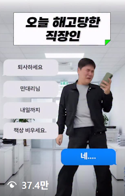 직장인 공감 콘텐츠로 폭발적인 반응을 얻고 있는 인플루언서, ‘민대리’(우)는 또 어떻구요. ‘퇴사하세요’라는 묵직한 메세지와 상반되는 골반 춤과 함께 빠르게 유행 반열에 올랐죠.